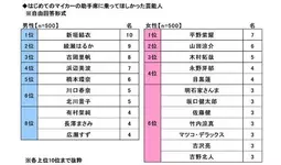 男性回答では1位「新垣結衣さん」2位「綾瀬はるかさん」