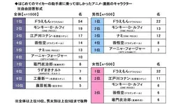 1位「ドラえもん」2位「モンキー・D・ルフィ」3位「江戸川コナン」