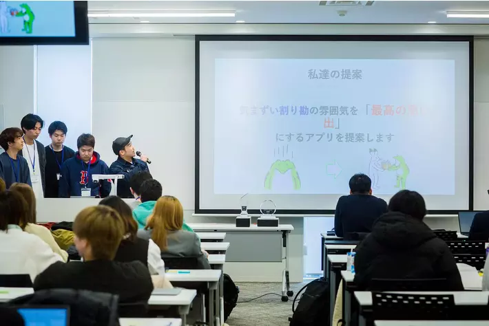 EOメンバーのユニオンエタニティ株式会社の新しいカーアイテムのアイデアを7チームに分かれ、実際のビジネスを肌で感じながら3週間にわたり立案。大阪・あべののキャンパスで最終プレゼンテーションを行いました
