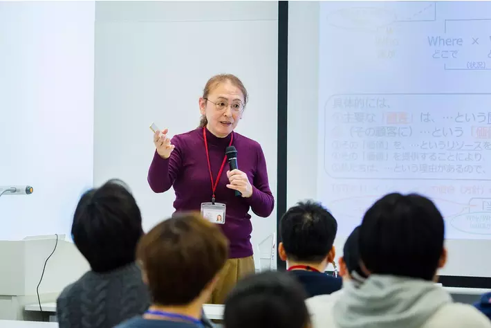 授業では、桃山学院大学ビジネスデザイン学部 実務家教員の岡田明穂先生(写真)のレクチャーのもと、29名の学生たちが7チームに分かれ、チーム内の仲間とともに新しいカーアイテムのビジネスアイデアを考えました。3月19日に大阪・あべののキャンパスで行われた最終プレゼンテーションでは、各チームの学生から、実体験に基づいたものを中心とした次のようなビジネスアイデアの発表が行われました。