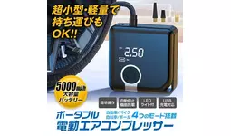 ・5000mAh大容量バッテリーで、一度の充電で自動車用タイヤに充填可能