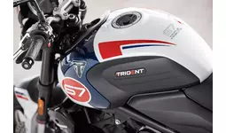テクノロジーアクセサリーには、便利なシート下USB充電ソケット、スタイリッシュでコンパクトなスクロールLEDインジケーター、タイヤ空気圧モニタリングシステムなど、さらには、Trident 専用に設計された防水ラゲッジやクイックリリースタンクバッグ、テールパックなどもあります。