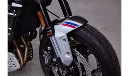 過去5回のマン島TTでの優勝を誇るTrident の「Slippery Sam」からインスパイアを受け、トライアンフのアイコンである「ホワイト、ブルー、レッド」カラーのレーシングスキームを現代風にアレンジしたモダンなグラフィックを纏っています
