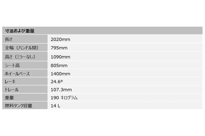 俊敏でスポーティなTrident のシート高は805mm、ウエイトは190kgとなっています。他にも、フロントホイールトラベル120mmのショーワ製ブラック倒立フォーク、リアホイールトラベル133.5mmのショーワ製リンケージ付きプリロード調整式モノショックRSUなど、細部までハイスペックな装備を備えています。