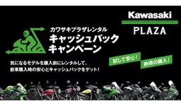 株式会社カワサキモータースジャパン(本社:兵庫県明石市、代表取締役社長:桐野 英子)が展開するカワサキプラザネットワークでは、期間中カワサキプラザレンタルをご利用の上、同一モデルシリーズをご成約のお客様へレンタル料金をキャッシュバックする「カワサキプラザレンタル キャッシュバックキャンペーン」を4月1日より実施いたします。