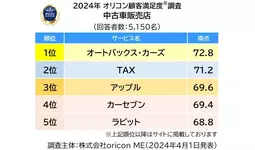 2024年 満足度の高い『中古車販売店』ランキング |【オートバックス・カーズ】が3年連続の総合1位(オリコン顧客満足度(R)調査)