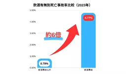 警察庁によると*¹、飲酒運転の死亡事故率は飲酒なしの約6倍です。2023年12月には、「白ナンバー」の車を使う事業者に対するアルコール検知器によるドライバーの飲酒検査が義務化されるなど、飲酒運転事故ゼロに向けて様々な取り組みが展開されています。