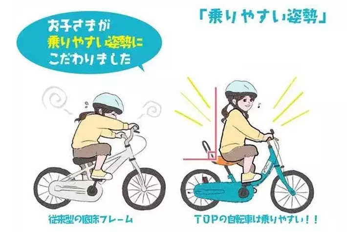 子どもと大人では「身長に対する足の長さの比率」が大きく異なるため、大人と同じ設計(大人用の縮小版)では、子どもにとって乗りやすい自転車とは言えませんでした。