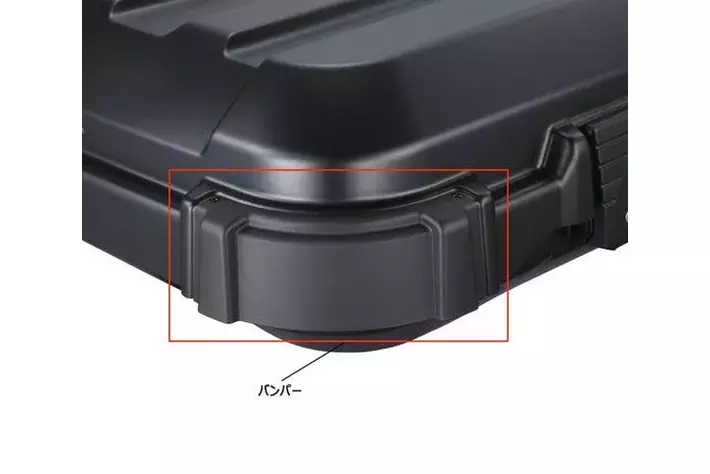 一般的な流線型ルーフボックスは、立てかけて保管することができません。本製品は、スクエア形状と四つ角にある傷防止バンパーにより、車に装着しない時には、横向き・縦向きどちらにも立てかけて保管することが可能です。バンパーは、傷が目立ちにくくなるよう粗いシボを採用したことで、デザインにもメリハリを効かせています。