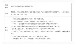 大型バイクへのデビューや買い換えを応援!50,000円分のオプションプレゼント!