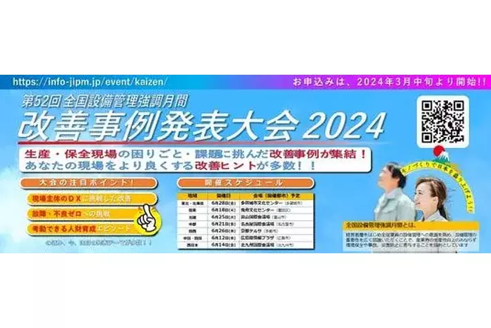 公益社団法人日本プラントメンテナンス協会(会長:河合 満[トヨタ自動車株式会社 Executive Fellow])は、製造現場での改善事例を紹介する「改善事例発表大会2024」を開催します。