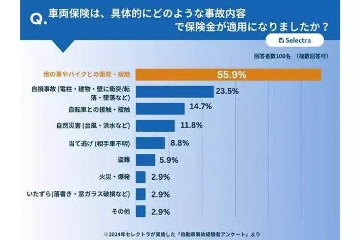 【自動車事故経験者108名に独自調査】役立った・付けておけば良かった補償No.1は車両保険と回答!