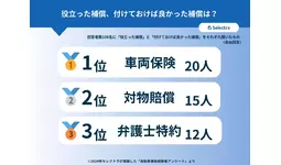 役立った補償・付けておけば良かった補償は、1位:車両保険、2位:対物賠償、3位:弁護士特約