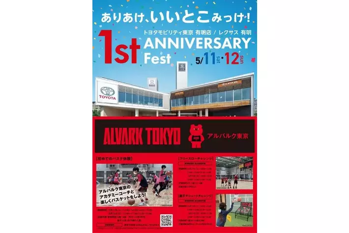 オープン当初からYACYBER直売所を常設しているトヨタモビリティ東京 有明店 Ariake Miraieが開店1周年を記念したイベント「1st ANNIVERSARY Fest」。バスケットボールチーム「アルバルク東京」とのスペシャルコラボのコーナーの他、音楽演奏会や手作りワークショップ、キッズエンジニア体験等、お友達同士、ご家族皆様で盛り上がること間違いなしです。