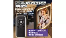 32個のLEDライトをつけて、明るさを6段階に調整可能。従来のベルトタイプから大幅に進化!ヘッドレストシャフトに引っ掛けるだけの簡単装着。リモコンボタンを押すだけてON/OFF、または30秒タイマーで点灯可能の簡単操作!