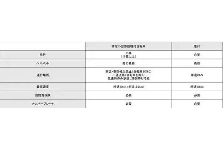※特定小型原動機付自転車とは、2022年4月に道路交通法改正案により新しくできた軽車両(自転車)と原付の間の区分。