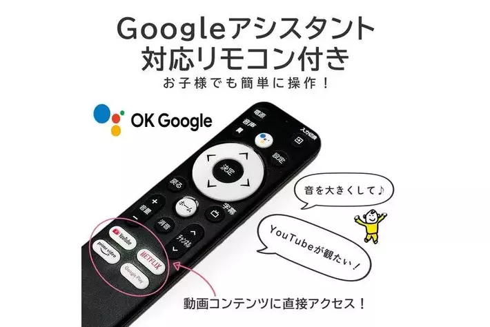 Googleアシスタント対応でダイレクト選定機能搭載 対応サイト:(Youtube,Netflix,Amazon prime Video,GooglePLAY)