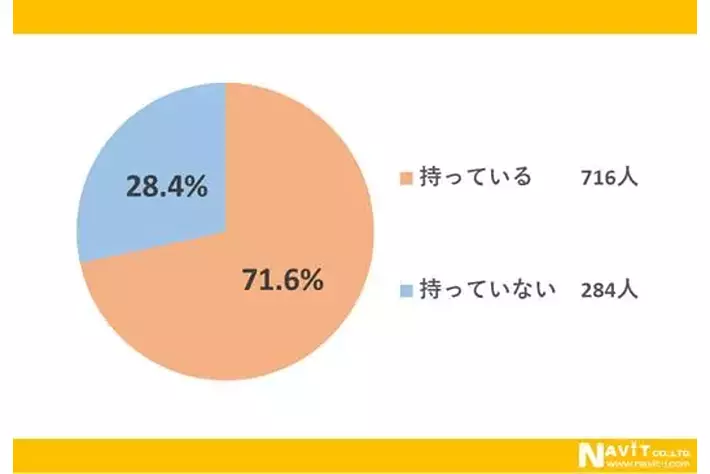 自家用車を持っているかの問いには71.6%が「はい」と回答。約7割の家庭が車を所有しているようです。