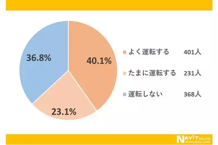 運転する頻度については「よく運転する」が最も多く40.1%、次いで「たまに運転する」が23.1%となりました。全体的に見て6割の人が運転をしていることがわかりました。