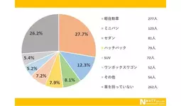 使用している車のボディタイプについては「軽自動車」がトップで27.7%となりました。次いで「ミニバン」で12.3%、「セダン」で8.1%と続きました。軽自動車は燃費が良く、維持費も安いため日本では人気のボディタイプとなっています。