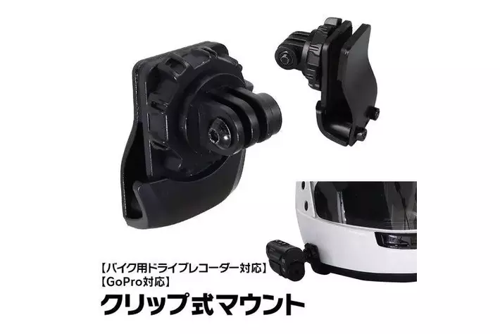 ドライブレコーダーに付属しているGoPro用マウントを使用することでバイク用ドライブレコーダーBDVR-A001、BDVR-A002などがカンタンに装着できます。