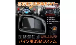 BSM(ブラインドスポットモニター)は、走行中の死角になりやすい自車の斜め後方車両を検知し、ライダーへ注意を促すことで運転負荷を軽減と事故を予防する機能です。 車体後部に搭載したミリ波レーダーが斜め後方車両を検知し、ミラー部に設置したインジケーターが点灯することでライダーへ危険をお知らせします。 純正ミラーが小さ過ぎて見辛い場合や、目視確認がしにくい夜間、梅雨や台風など雨の多い季節等での状況をサポートします。