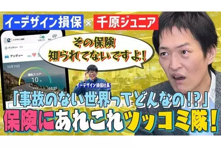 &eは、「事故時の安心だけでなく、事故のない世界そのものを、お客さまと共創する。」という当社のミッションのもと、2021年に販売を開始した自動車保険です。車内にカンタンに取り付けられる安心センサーとアプリにより、万一の事故の衝撃を自動検知するだけでなく、日々の運転をスコア化することにより安全運転に貢献します。また、アプリ内で「ハート」を獲得することで、コンビニや飲食店などでコーヒーやスイーツなどに交換できるサービスも提供しており、幅広い世代のお客さまにご支持いただいています。 今回、過去の経験から事故に対する当事者意識の高い千原ジュニアさんに、&eが目指す「事故のない世界」に共感いただき、本企画が実現しました。動画では、そもそも保険とは何かという基本的な内容や&eが目指す「事故のない世界」とは何かをテーマに、千原ジュニアさんとイーデザイン損保の社員が本音トークをお届けします。自動車保険のリアルをお見せしながら、「事故のない世界」を皆さまによりわかりやすく、身近に感じていただける内容になっています。