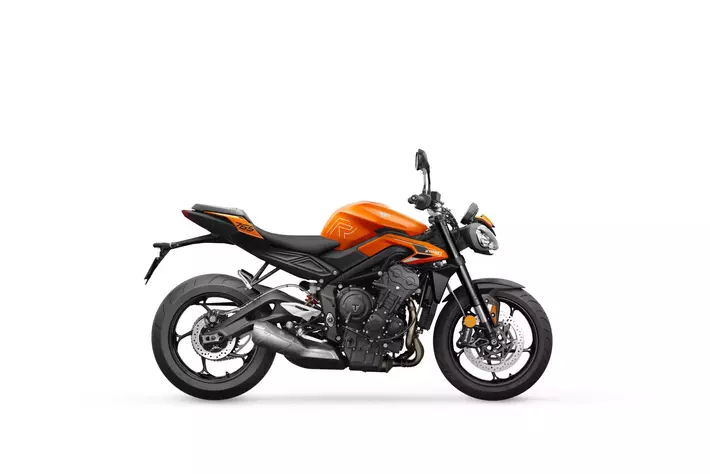 Street Triple 765 Rはスタイリッシュなマットバハオレンジと印象的なピュアホワイトの2色からお選びいただけます。