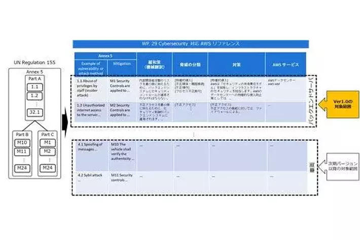 本参考文書は、WP.29 UN-R 155基準を考慮したものであり、AWSの対応内容と参照先の情報を提供する事で自動車関連企業におけるWP.29 UN-R155への対応や準拠性の確認にかかる負荷の低減を支援します*1。