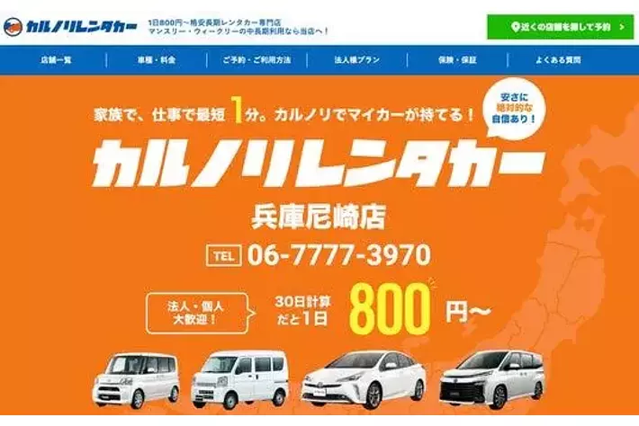 全国で19店舗を運営するレンタカー専門会社、カルノリレンタカーが『兵庫尼崎店』を4月15日にオープン