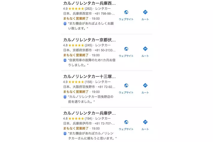 カルノリレンタカーの特徴3:安かろう悪かろうは徹底排除、お客さまからの高評価口コミを獲得