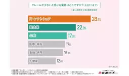そこで、「クレームが少ないと感じる業界はどこですか?(上位3つまで)」と質問したところ、『IT・ソフトウェア(28.9%)』と回答した方が最も多く、次いで『製造業(22.0%)』『公務(17.9%)』と続きました。IT・ソフトウェアや製造業、公務といった業界は、品質管理やクレーム対応のプロセスが整備されている傾向にあるため、顧客の不満が早期に解決されることが多いのかもしれません。
