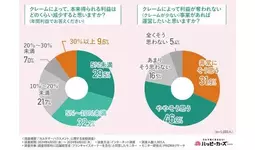 「クレームによって、本来得られる利益はどのくらい減少すると思いますか?(年間利益でお答えください)」と質問したところ、『5%未満(29.5%)』『5%~10%未満(32.2%)』『10%~20%未満(21.7%)』『20%~30%未満(7.0%)』『30%以上(9.6%)』という回答結果になりました。本来得られる利益が、クレームによって「5%~10%未満」減少すると考える方が最多という結果になりました。