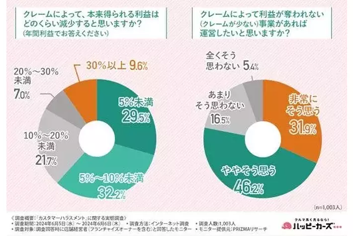株式会社ハッピーカーズ(本社所在地:神奈川県鎌倉市、代表取締役:新佛 千治)は、店舗経営者(フランチャイズオーナーを含む)を対象に、「カスタマーハラスメント」に関する実態調査を実施しました。