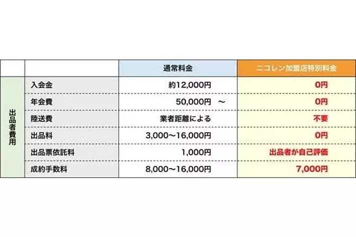 出品に必要な費用は、成約手数料7,000円(税別)だけで、陸送費もかかりません。