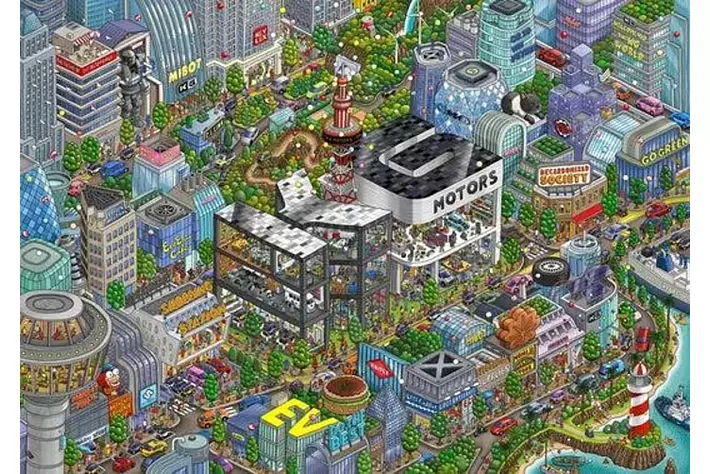 展示イベントでは、mibotの実車とともに、広島を代表するクリエイターIC4DESIGNのカミガキヒロフミさんによるイラスト「mibotが走る未来の街」も展示します。このイラストは、多様なモビリティが活気に溢れる街を描き、KGモーターズが目指す未来を表現しています。