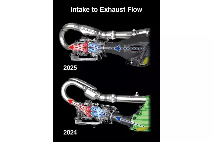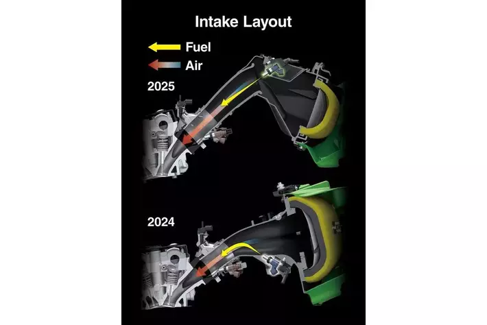 ・インテークカムシャフトの位置を見直し、より直線的になったダウンドラフトインテーク