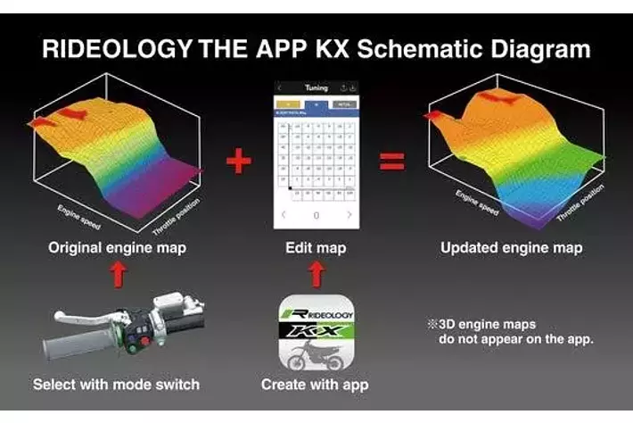 ・スマートフォンでエンジンマッピングの調整ができるRIDEOLOGY THE APP KX