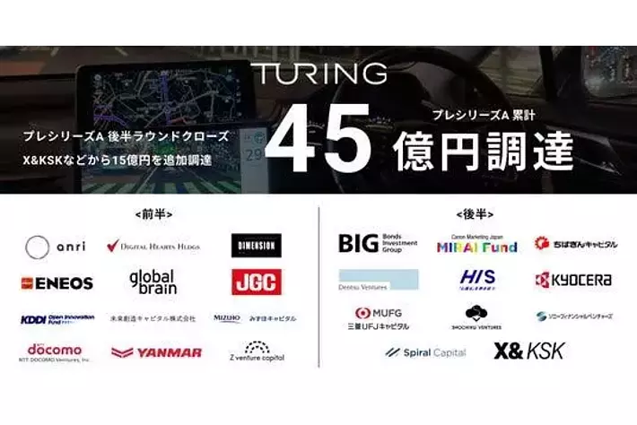 生成AIを活用した完全自動運転車両の開発に取り組むTuring株式会社(東京都品川区、代表取締役:山本 一成、以下「チューリング」)は、X&KSKをはじめとした複数の投資家からの出資により、プレシリーズAラウンドの後半として15億円の資金調達を実施し、総額45.38億円の調達でプレシリーズAラウンドを完了したことをお知らせします。これにより、創業以来の累計資金調達額は約60億円となります。