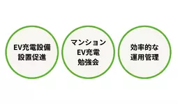本提携により、ユビ電は大京アステージと穴吹コミュニティが管理する日本全国のマンションに対して、EV充電設備の導入提案を計画しています。具体的には以下の取り組みを行います。