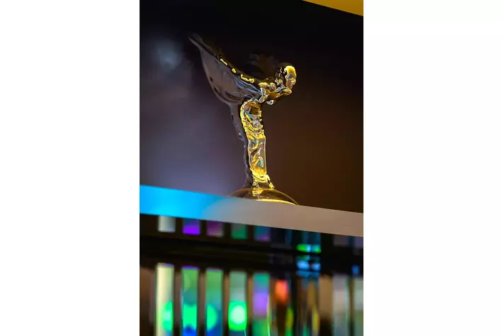ショールームの内部は、洗練されたコンテンポラリー・ラグジュアリーやクリエイティビティを表現しながらも、ブランド創設者の言葉を随所に配し、ブランドの120年の歴史を再認識させます。ラウンジスペースであるキャビネット・オブ・キュリオシティ(Cabinet of Curiosities)」には、時代を超越した魅力的なオブジェやアートワークが折衷的にディスプレイされ、ロールス・ロイスならではのビスポークのコミッショニング・プロセスの一環として、お客様にインスピレーションや、個性あふれるアイディア、そしてクリエイティビティの実現へのきっかけを促すようにデザインされています。また、「スピークイージー・バー(Speakeasy Bar)」はリラックスした雰囲気の中、お客様同士の交流の場としてもお楽しみいただけます。
