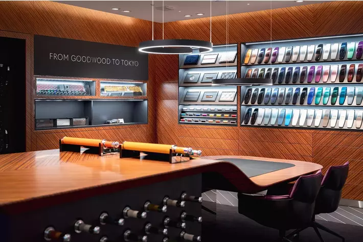 ロールス・ロイスの真髄を表すビスポークのためのスペース「アトリエ (Atelier)」、インスピレーション溢れるラウンジスペース「キャビネット・オブ・キュリオシティ(Cabinet of Curiosities)」、「スピークイージー・バー (Speakeasy Bar)」といった様々な要素を取り入れてデザインされたコンテンポラリーでラグジュアリーな空間