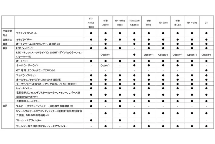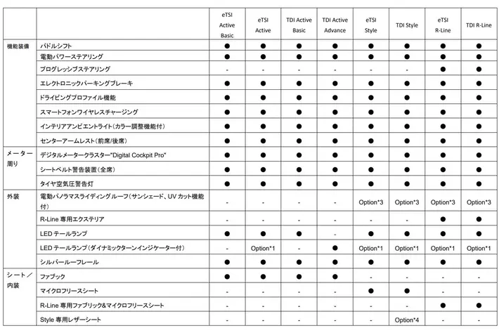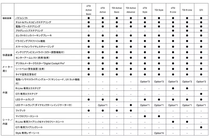 ・ ラグジュアリーパッケージ(eTSI Style / TDI Style / eTSI R-Line / TDI R-Line / GTI)*3
