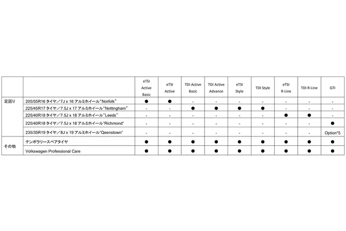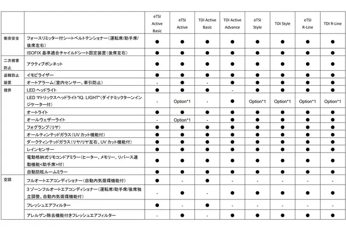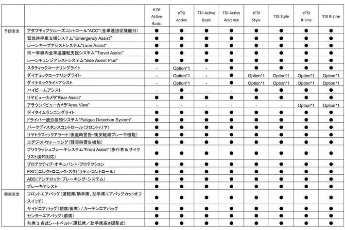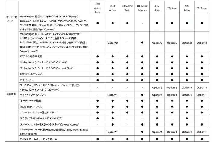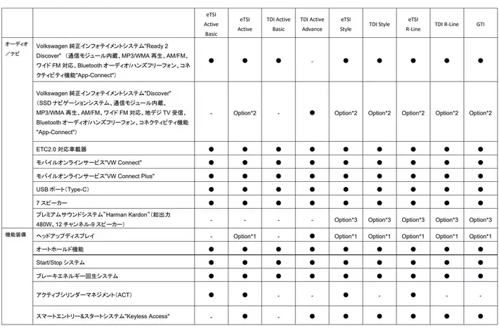 - TDI Active Basic 2.0L TDI(110kW/150PS) / 7速DSG / FWD