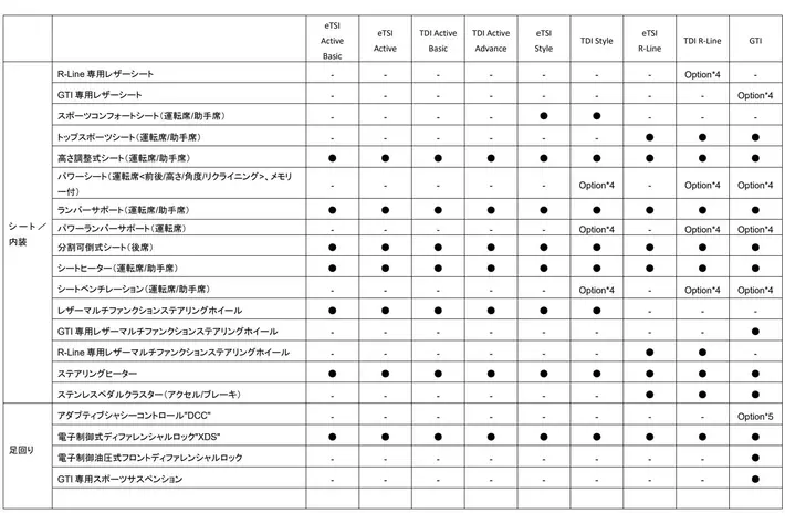 ・ レザーシートパッケージ(eTSI Style / TDI Style / eTSI R-Line / TDI R-Line / GTI)*4