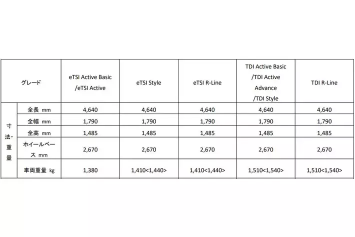- eTSI Active Basic 1.5L eTSI(85kW/116PS) / 7速DSG / FWD