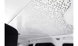 ヘッドライナーもアイスホワイトのALCANTARA(R)で覆われており、フェード効果のデジタルプリントが施されています。