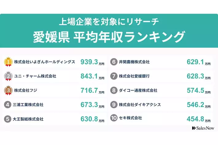 【愛媛県】上場企業平均年収ランキングTOP10!/SalesNow DBレポート