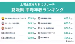 「誰もが活躍できる仕組みをつくる。」をミッションに掲げ、セールスチームの武器となるデータベース「SalesNow」を展開する株式会社SalesNow(本社:東京都渋谷区、代表取締役:村岡功規、以下「SalesNow」)は、国内540万社の企業情報を完全網羅した日本最大級のデータベース「SalesNow DB」より、愛媛県に本社を置く上場企業の平均年収ランキングを調査しました。