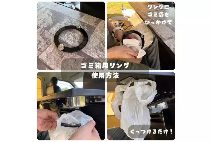 リングにビニール袋をひっかけてゴミ箱に